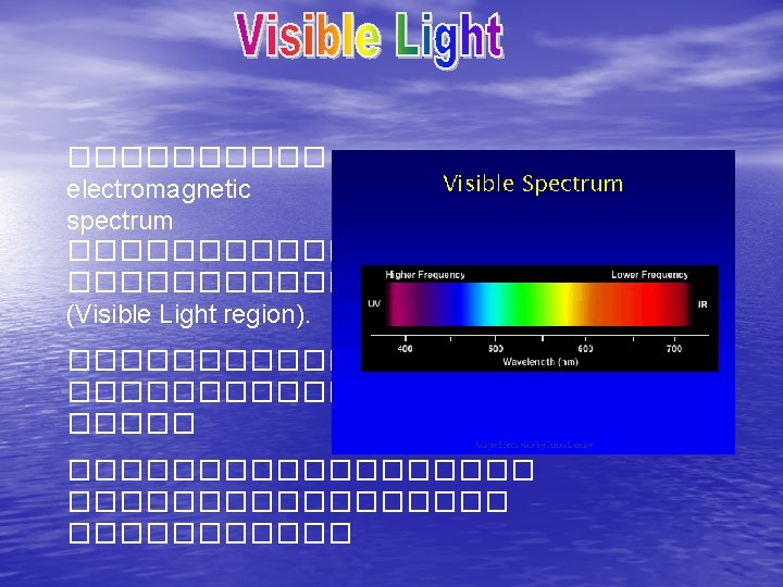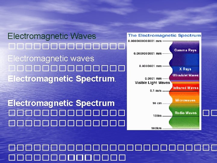 At the low energy end are the long wavelength Radio Waves. At the high energy end are the short wavelength Gamma Rays.