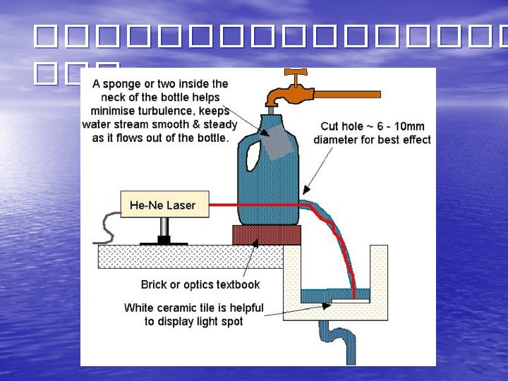 Optical Fiber Human hair for comparison 50 – 80 mm Typical refractive indices: Cladding: Core: ncl = 1. 4440 nco = 1. 4512 Light is guided along the core by Total Internal Reflection Cladding helps isolate light from edge of fibre where losses and scattering are high 1 mm = 1/1000000 m