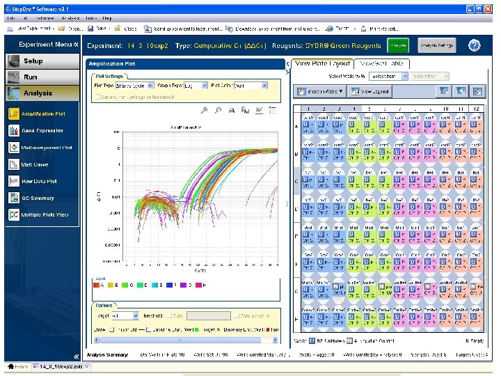 Workflow – preliminary data analysis Examine amplification curves Check/adjust baseline Check/adjust threshold Check your controls (NTC/positive controls/No-RT) Check your samples Perform experiment specific analysis