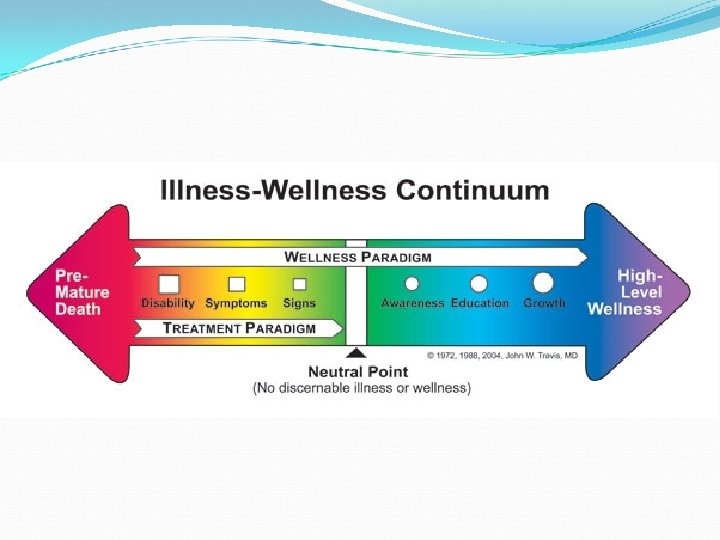 Outline: What is health? What is wellness? The differences between health and wellness. Elements of wellness. Diseases and illness. Personal health assessment. Factors affecting personal health.