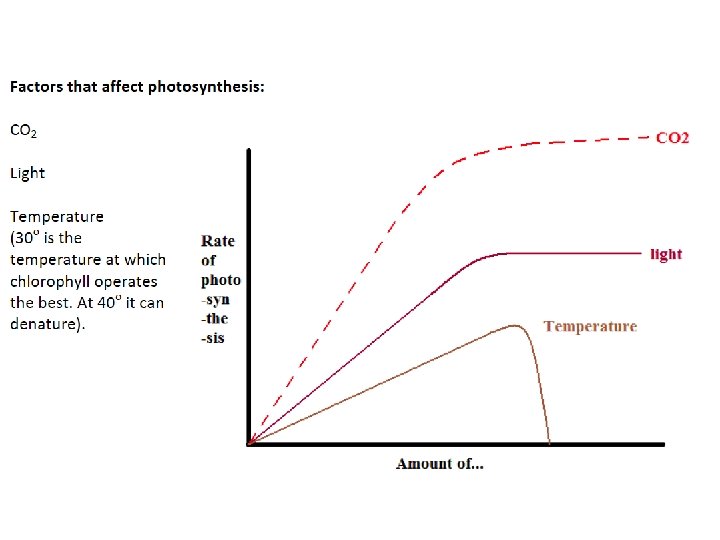 Now have a look at the demonstration of Elodea (water weed) • Try and answer the following questions as you are given the demonstration • What are the effects of changing: 1) Carbon dioxide concentration 2) Temperature 3) Light intensity