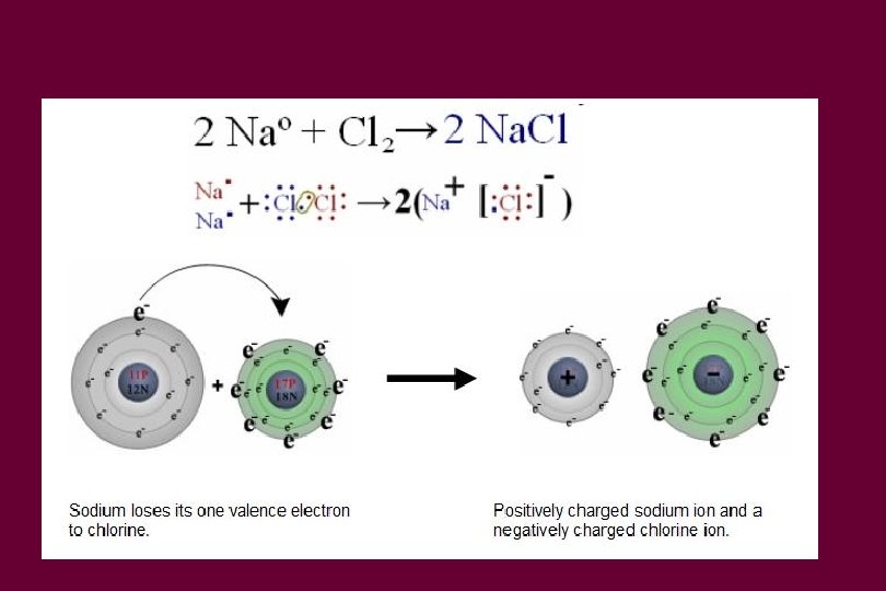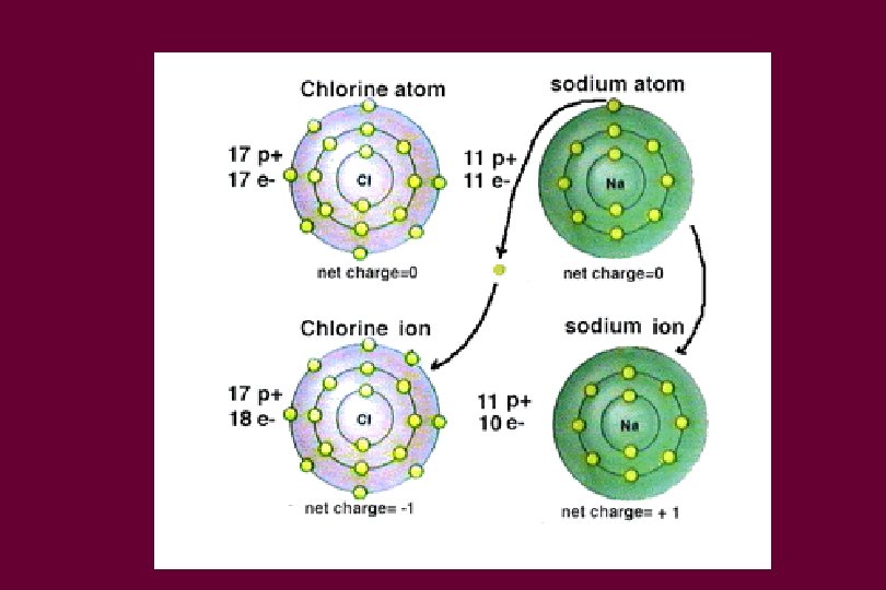 Charges need to balance • Na ions carry a +1 charge • Cl ions carry a -1 charge • Na+ + Cl- → Na. Cl (Sodium chloride)