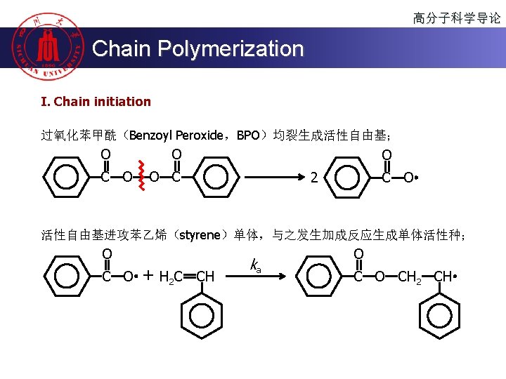 高分子科学导论 Chain Polymerization II. Chain propagation O CH 2 CH kp 2 H 2 C CH kp 1 H 2 C CH O CH 2 CH O C O ( CH 2 CH )2 CH kp 3 H 2 C CH ……