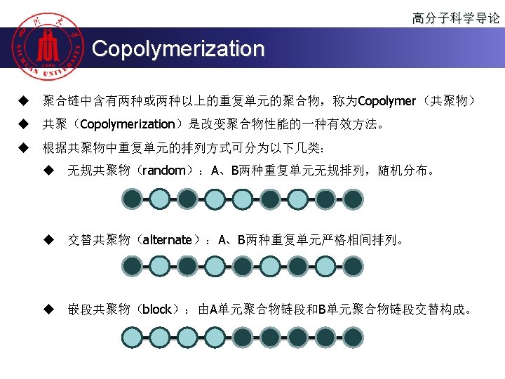 高分子科学导论 Copolymerization F. Y. Zhai, W. Huang, G. Wu, X. K. Jing, M. J. Wang, S. C. Chen* et. al. ACS Nano 2013, 7, 4892 -4901.