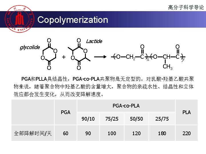 高分子科学导论 Copolymerization Self-assembly “Crystalline-Coil” block copolymer of PPDO and PEG Si-Chong Chen, Gang Wu et. al. Chem. Commun. , 2011, 47, 4198– 4200