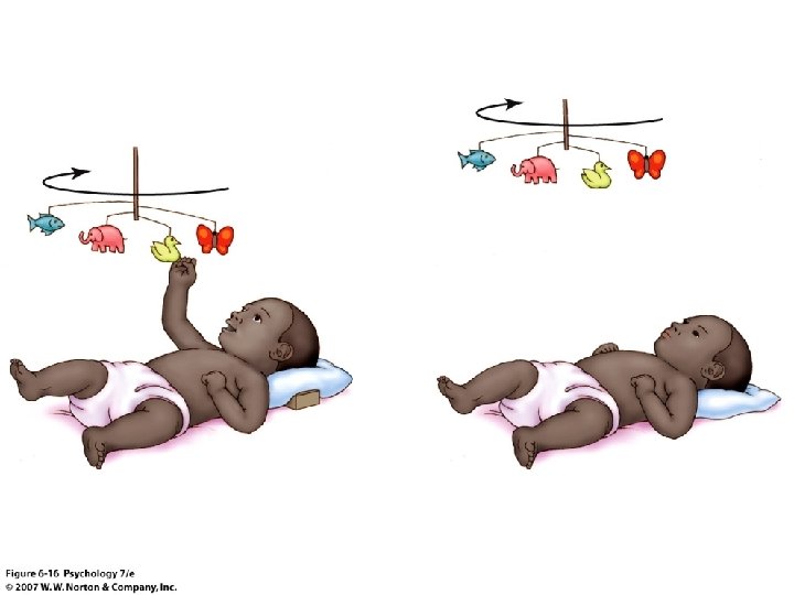 Act/outcome Representations • Actions result in specific outcomes – Mastery: satisfaction at having control over the outcome – Two classic experimental findings: • Infants and mobiles: infants like to make the mobiles move (Watson, 1967) • Learned helplessness: control over environment lessens stress/distress; sense of futility, or lack of control, increases stress/distress (Seligman, 1975)