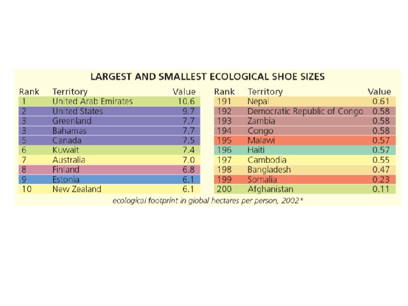 Ecological Footprints of different countries Red = Highest per capita footprints Living Planet Report WWF
