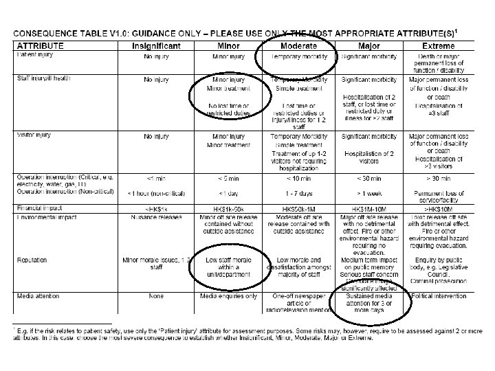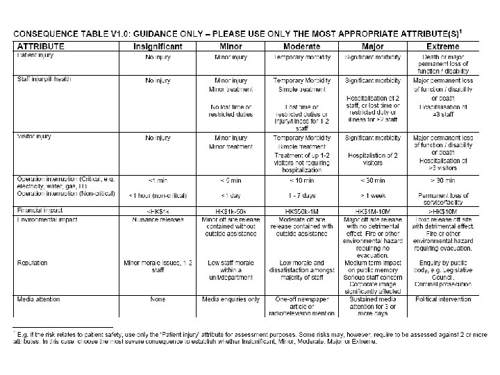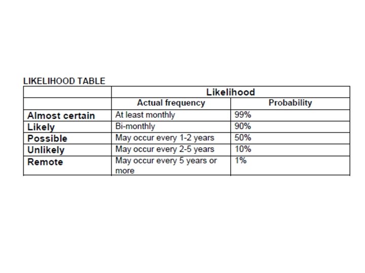 Describing risk – the ‘ 3 C’s’ 1. Risk is inherently negative, implying the possibility of adverse consequences. Describe the potential consequences if the risk were to materialise 2. Describe the causal factors that could make the risk materialise 3. Ensure that the context of the risk is clear, e. g. is the risk ‘target’ well defined (e. g. staff, patient, department, hospital, etc. ) and is the ‘nature’ of the risk clear (e. g. financial, safety, physical loss, perception, etc. )