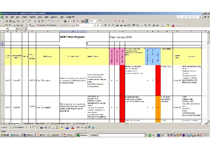 Some common sources of information used to populate a healthcare risk register REACTIVE Staff adverse incidents Complaints INTERNAL Other adverse incidents Root cause analyses Internal audits and inspections Patient Staff consultation General risk assessments Suggestion scheme Specialist risk assessments Claims Risk Register Hazard warnings Coroners reports Inquiry reports PROACTIVE Patient adverse incidents Safety alerts Accreditation standards Incidents etc. occurring ‘elsewhere’ Conferences, Seminars, etc. Facilitated workshops FMEA External audits, reviews etc. Benchmarking External stakeholder consultation EXTERNAL Books