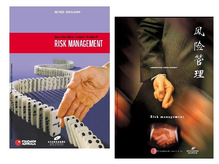 Risk management process AS/NZS 4360: 2004 - Risk management Analyse Risks Evaluate Risks Treat Risks Monitor and review Identify Risks RISK ASSESSMENT Communicate and Consult Establish Context