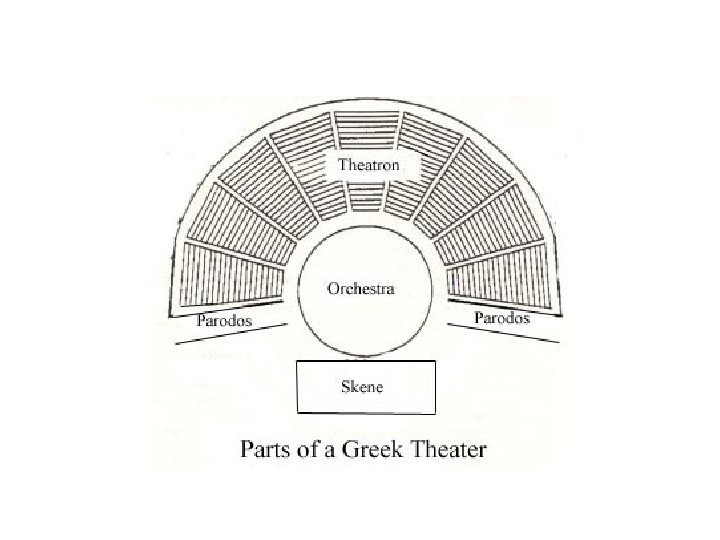 • Theatre, from the Greek theatron, literally "place for viewing, ” from theasthai "to behold" (related to thea "a view, a seeing)+ tron, suffix denoting place. • http: //www. etymonline. com/index. php? term=theater