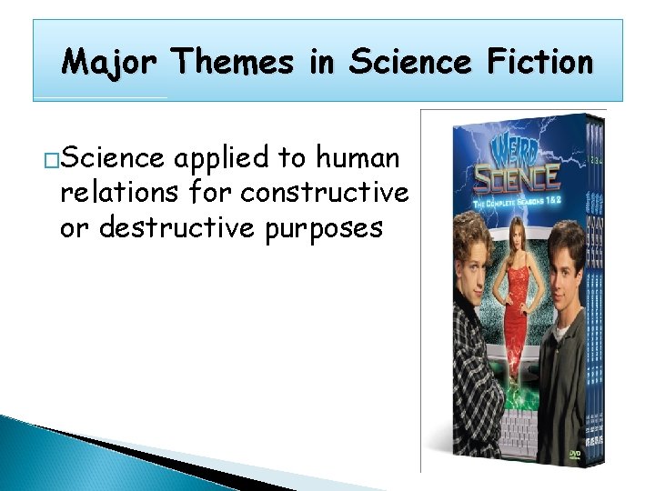 Major Themes in Science Fiction �Science applied to human relations for constructive or destructive purposes