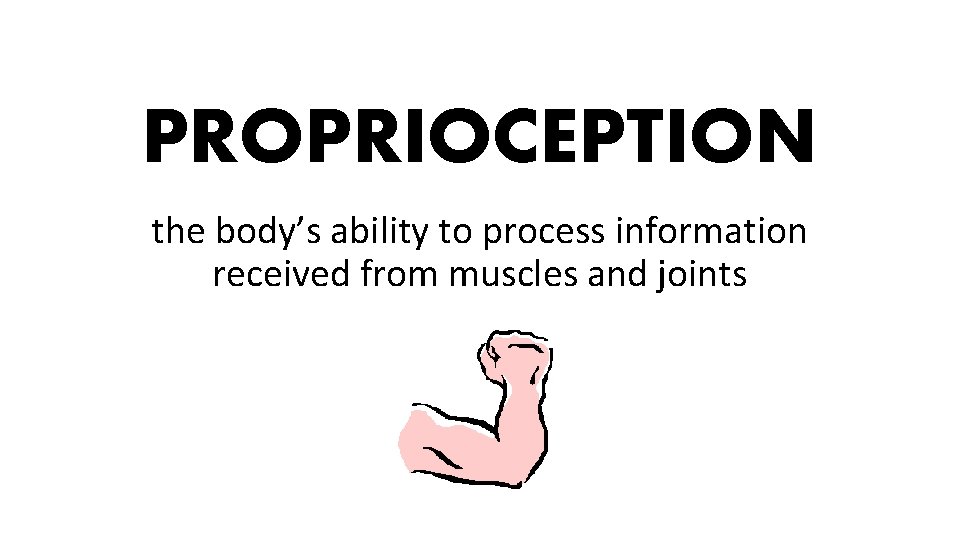 PROPRIOCEPTION the body’s ability to process information received from muscles and joints