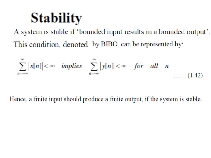 All physical systems are causal ü Non-causal systems do not exist. ü This classification of a system may seem redundant. But, it is not so. This is because, sometimes, it may be necessary to design systems for given specifications. ü When a system design problem is attempted, it becomes necessary to test the causality of the system, which if not satisfied, cannot be realized by any means.