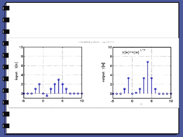 Ø The system is memory-less if its instantaneous output depends only on the current input. Ø In memory-less systems, the output does not depend on the previous or the future input.