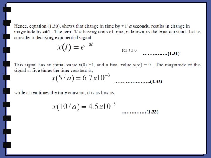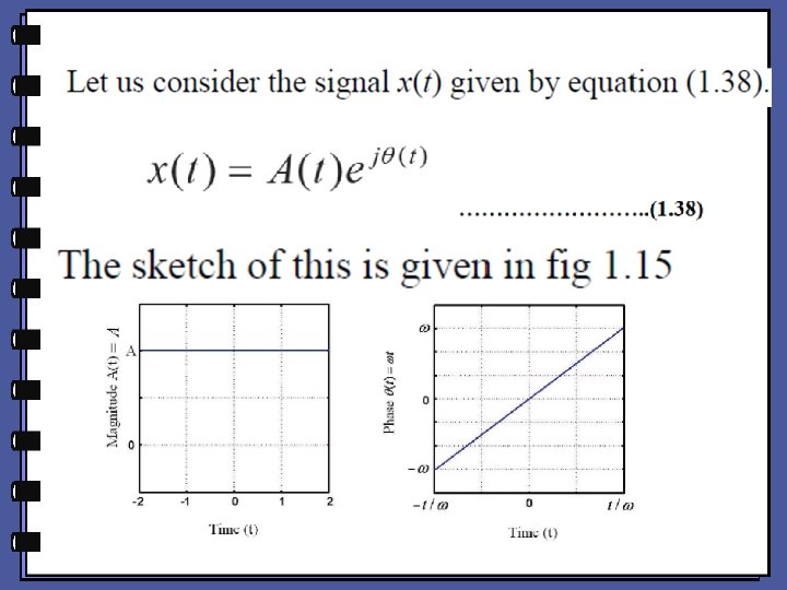 The complex exponential: • We now represent the complex exponential using the Euler’s identity (equation (1. 35)), to represent sinusoidal signals. We have the complex exponential signal given by equation (1. 36)