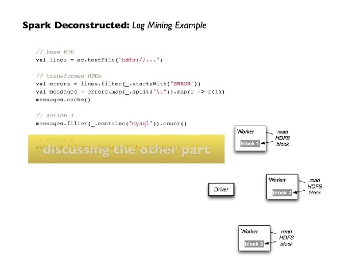 Resilient Distributed Datasets (RDDs) • Can create RDDs from any file stored in HDFS – Local filesystem – Amazon S 3 – HBase • Text files, Sequence. Files, or any other Hadoop Input. Format • Any directory or glob – /data/201414*