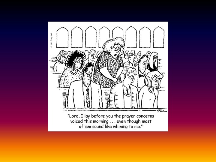 HAVE A PRAYERFUL ATTITUDE… BE REAL! "When you pray, do not be like the hypocrites, for they love to pray standing in the synagogues and on the street corners to be seen by men. " vs. 5 Don’t try to IMPRESS GOD! Don’t try to IMPRESS OTHERS!