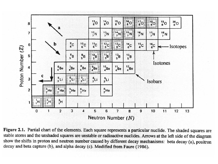 Definitions Isotopes Atoms of the same element (i. e. , same number of protons and electrons) but different numbers of neutrons. Stable Isotope Do not undergo radioactive decay, but they may be radiogenic (i. e. , produced by radioactive decay). Usually the number of protons and neutrons is similar, and the less abundant isotopes are often “heavy”, i. e. , they have an extra neutron or two.