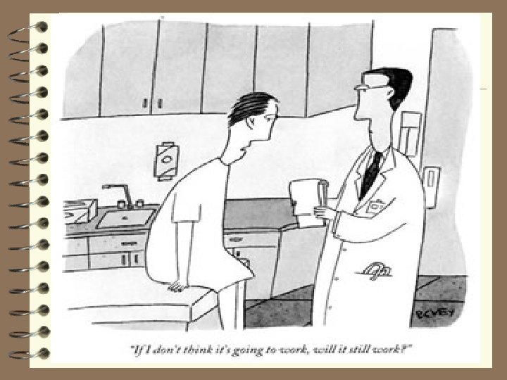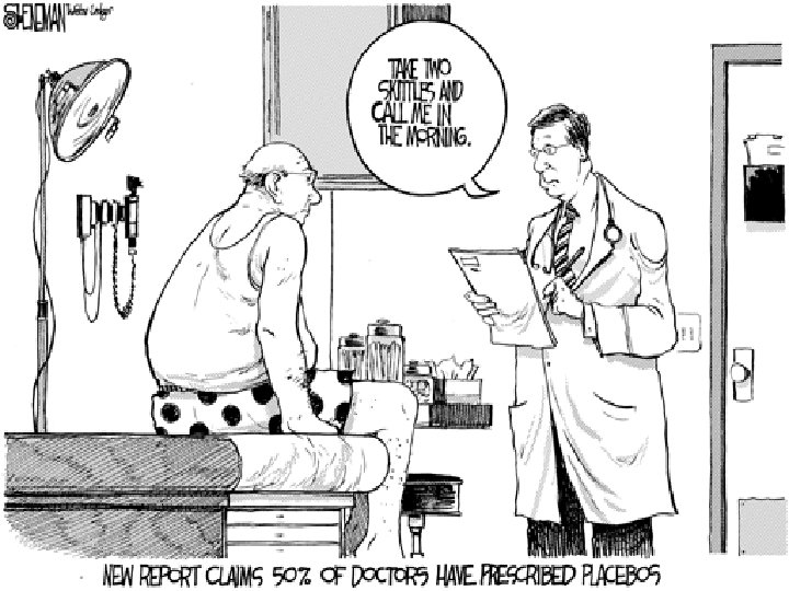 Placebo (single blind) versus double blind procedure • Single blind procedure (example: use of placebo) • Double blind procedure What about experimenter bias?