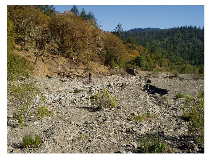 An Example: Cuneo Creek, Tributary to Bull Ck Humboldt Redwoods State Park Basin logged in 1950 s-60 s, high sediment yields. Aggradation, braided channel Bull Ck Cuneo Ck