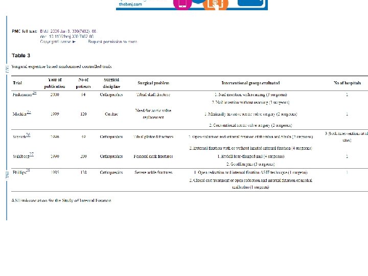 Additional issues • Surgery vs non-surgical treatments have a statistical issue of clustering in the surgical arm around the surgeon and no clustering in the non-surgical arm • Until recently this was ignored but statistical methods are now being used to deal with this