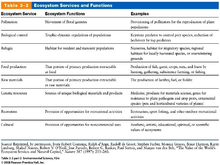 Biomes provide ecosystem services • Ecosystem service= An essential service an ecosystem provides that supports life & makes economic activity possible