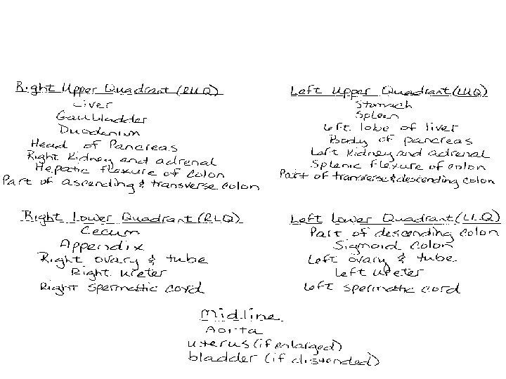 Abdominal Divisions n n Four Quadrants Nine Quadrants