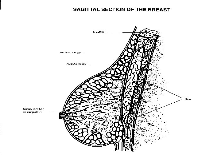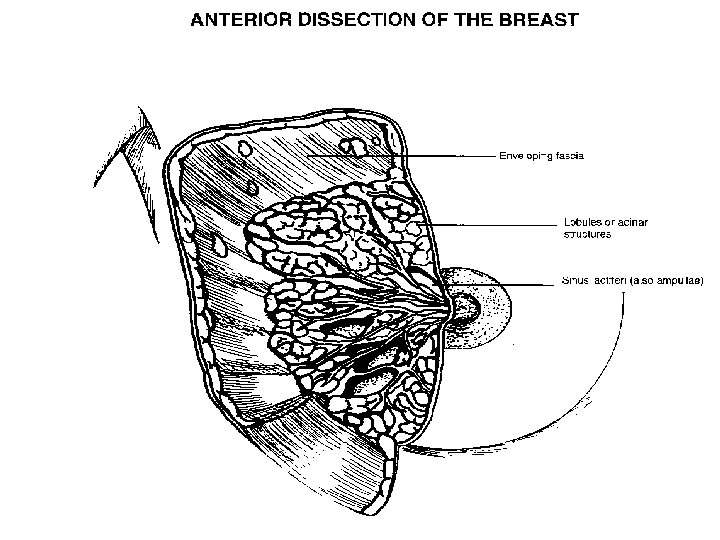 Anatomy of the Breast n n n n Mammary Gland Modified Sweat Glands Anterior to the Pectoralis Major Muscle 15 to 20 lobes Reproductive System (accessory) Secrete milk for infant Functionless in the male Well vascularized