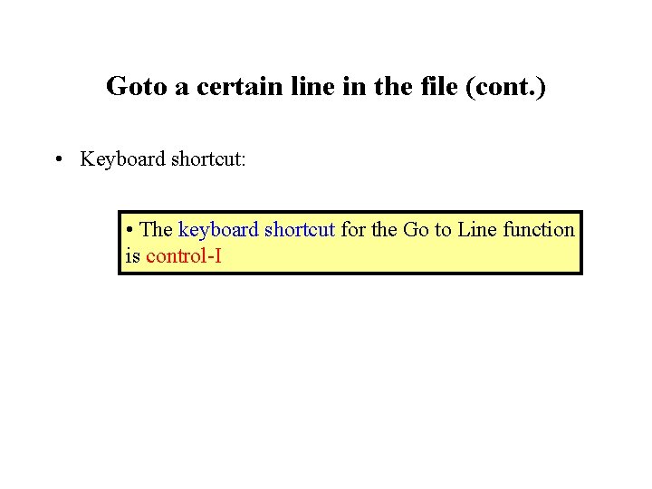 Goto a certain line in the file (cont. ) • Keyboard shortcut: • The keyboard shortcut for the Go to Line function is control-I