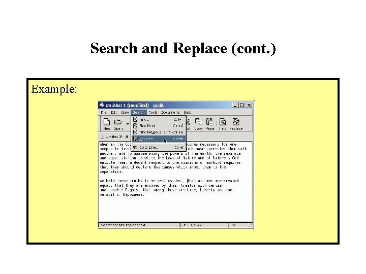 Search and Replace (cont. ) Example: