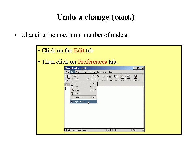Undo a change (cont. ) • Changing the maximum number of undo's: • Click on the Edit tab • Then click on Preferences tab.