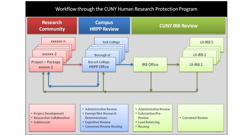 The CUNY UI IRB The CUNY University Integrated Institutional Review Board is charged with protecting the rights and welfare of human research participants. The UI IRB ensures that proposed research follows federal guidelines and accepted ethical principles. The UI IRB is made of researchers and community members; scientists and non-scientists. IRB members have various backgrounds and experience with different methodologies. Keep this in mind as you write your application. Human Research Protection Program (HRPP) Office