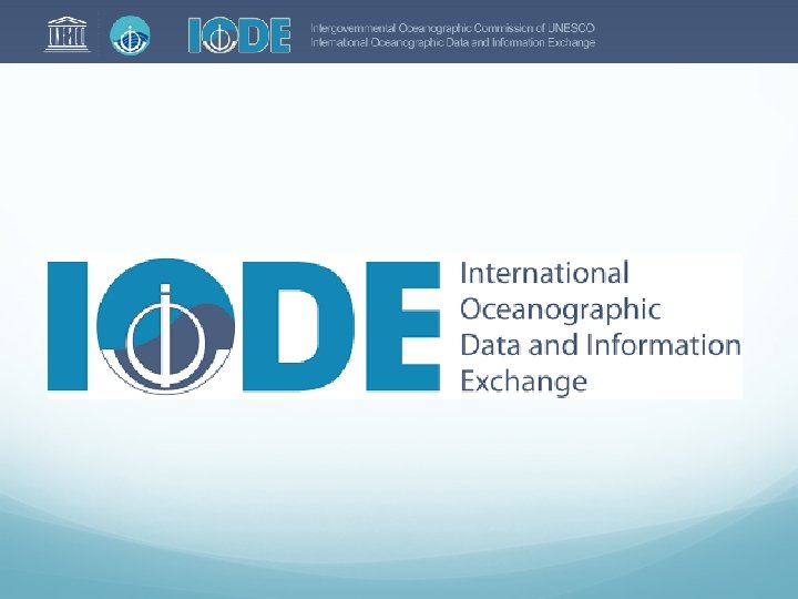 IOC History 1957 -1958: IGY established World Data Centres International Indian Ocean Expedition (1959 -1965) 1960: Intergovernmental Conference on Oceanographic Research, in Copenhagen, UNESCO Member States recommended that all states make every effort to publish oceanographic data and distribute them to all interested institutions. 1960: IOC established to coordinate global ocean research programmes. 1961: Establishment of the Working Group on Warren Wooster First Exec Sec IOC Exchange of Oceanographic Data => IODE was born 2