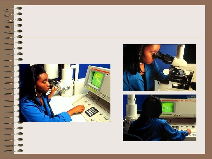• Place the Slide on the Microscope • Use Stage Clips • Click Nosepiece to the lowest (shortest) setting • Look into the Eyepiece • Use the Coarse Focus