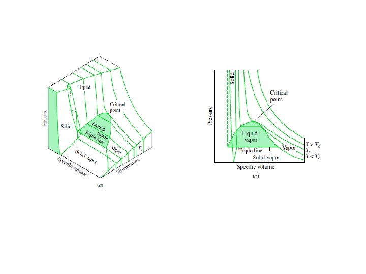A. Sistem dipanaskan pada tekanan tetap, temperatur meningkat cepat, sedangkan volume spesifik hanya sedikit meningkat (f) disebut cair jenuh. B. Keadaan cair di sepanjang bagian garis 1 -f disebut keadaan cair subdingin (subcooled liquid) atau disebut juga cair tekan. C. Prose dari (f) ke (g) terjadi penambahan kalor pada tekanan tertentu menyebabkan terbentuk uap tanpa perubahan temperatur tetapi peningkatan volume spesifik yang berarti