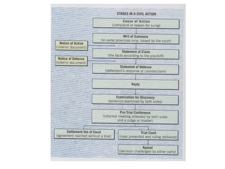 Parties are called litigants (Litigation is the action) Plaintiff- party that initiated the legal action Defendant-litigant against whom the action is taken ie: Mc. Fadden v. Harris Onus is on the plaintiff to prove the case on a “balance of probabilities”-the weighing of evidence to decide whether it is the plaintiff’s or the defendant’s version of the events that is more convincing.