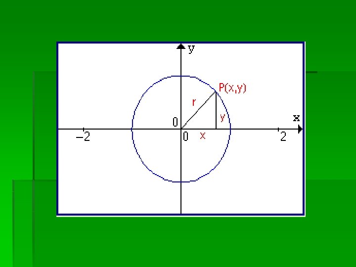 Definitions of Trig Functions § Sin /r § Cos § Tan § Csc § Sec § Cot = O O O = = = y x/r y/x r/y r/x x/y