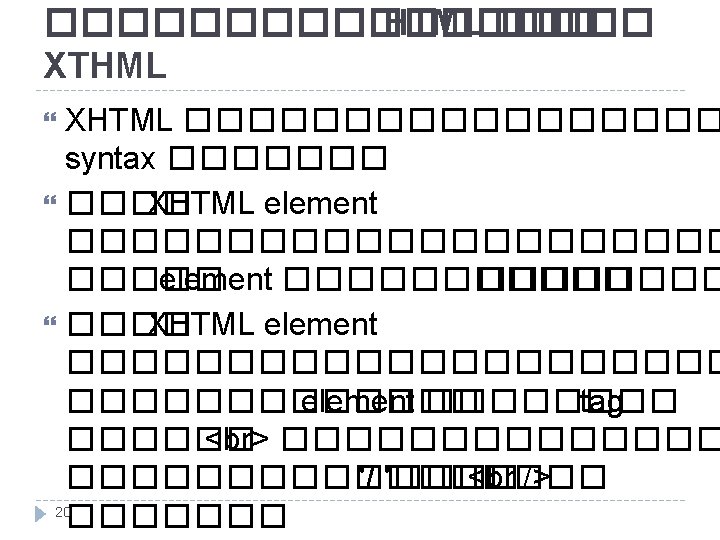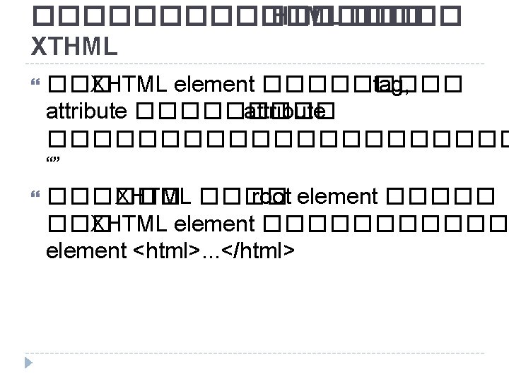 XHTML Documents type XHTML 1. 0 Strict <!DOCTYPE html PUBLIC "-//W 3 C//DTD XHTML 1. 0 Strict//EN" "http: //www. w 3. org/TR/xhtml 1/DTD/xhtml 1 strict. dtd"> XHTML 1. 0 Transitional <!DOCTYPE html PUBLIC "-//W 3 C//DTD XHTML 1. 0 Transitional//EN" "http: //www. w 3. org/TR/xhtml 1/DTD/xhtml 1 transitional. dtd"> XHTML 1. 0 Frameset 24 <!DOCTYPE html PUBLIC "-//W 3 C//DTD XHTML