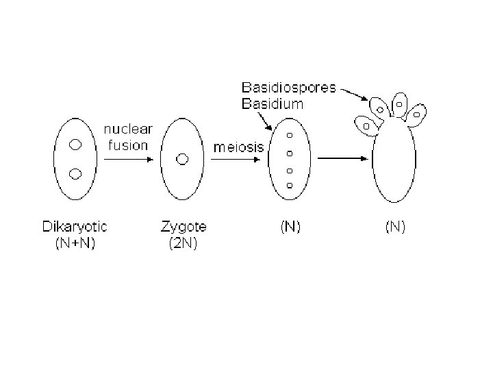 Fungal life cycles mitosis Life cycle is predominantly dikaryotic (n + n) n + n 2 n Karyogamy 2 n n + n Plasmogamy Meiosis