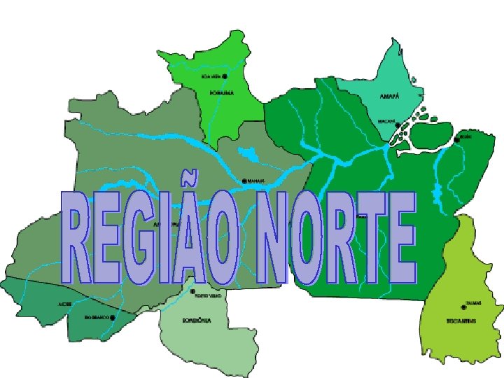 A COBERTURA VEGETAL • A região Norte é o domínio da Floresta Equatorial Amazônica; heterogênea, higrófila, latifoliada, perene, dividida em três tipos diferentes, a Mata do Igapó, mata de várzeas e a mata das terras firmes ou secas ou caa-etê. • Na porção oriental de Roraima, em algumas pequenas áreas limítrofes das Guianas com o norte do Pará e na porção oriental de Rondônia ocorre a vegetação do cerrado.