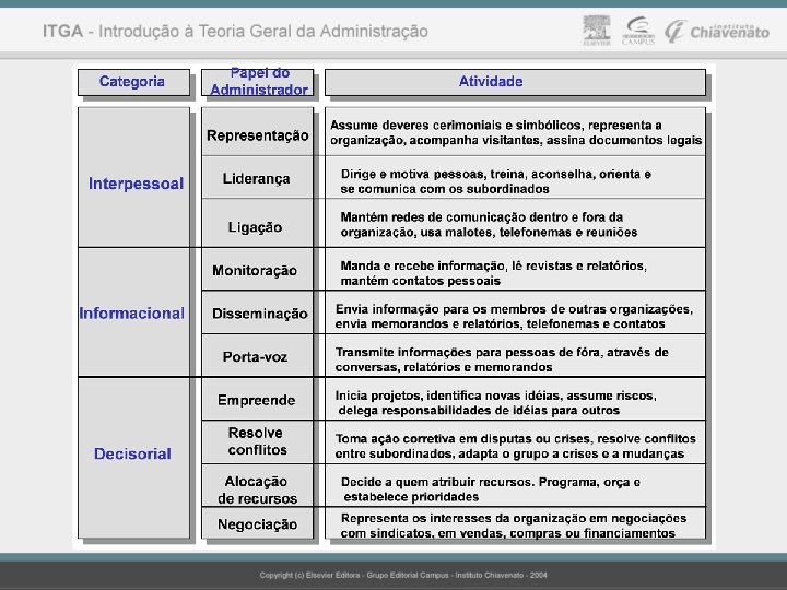 Figura I. 4. Os Dez Papéis do Administrador: