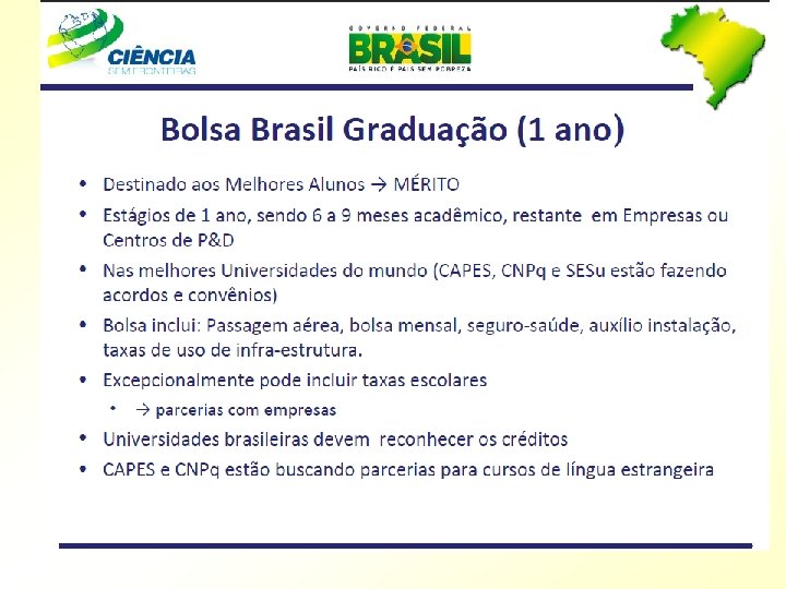 Plano de Ação 2007 -2010 Ciência, Tecnologia e Inovação para o Desenvolvimento Nacional Participação do Brasil no mundo atual PIB 1, 4% O Brasil tem hoje mais de 100. 000 pesquisadores. Tem a maior e mais qualificada comunidade de C&T da América Latina Publicações científicas 2, 7% Entretanto, Patentes 0, 2%
