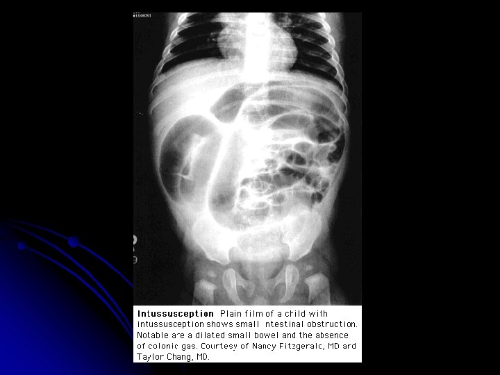 Clinical Manifestation l l l (3 -2) The episodes usually occur at 15 to 20 minute intervals. They become more frequent and more severe. Vomiting may follow episodes of abdominal pain. Initially emesis is non-bilious, but it may become bilious as the obstruction progresses. Between the painful episodes, the child may behave relatively normally and be free of pain. As symptoms progress, increasing lethargy develops, which can be mistaken for meningoencephalitis.