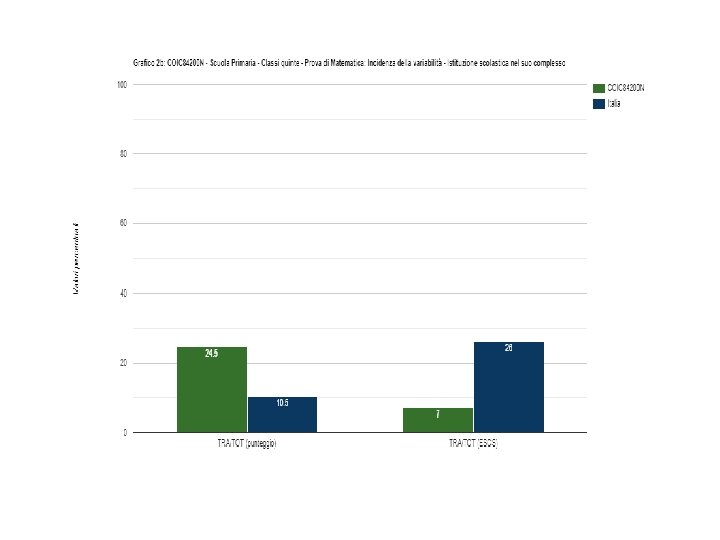 Andamento ultimi anni matematica quinte Differenza nei risultati Esiti degli studenti (punteggio percentuale) Media del punteggio Background familiare al netto del cheating rispetto a classi/scuole percentuale mediano degli nella stessa scala del rapporto nazionale con al netto del cheating (1 a) studenti (3) (4) (1 d) background familiare simile (2) Punteggio percentuale osservato (6) Cheating in percentuale (7) significativamente superiore 68, 4 0, 9 significativamente superiore 59, 6 1, 0 significativamente superiore 56, 1 0, 4 medio-alto significativamente superiore 63, 2 2, 0 +1, 1 alto significativamente superiore 56, 2 0, 8 +6, 1 medio-alto significativamente superiore 68, 8 2, 3 Punteggio Lombardia (5) Punteggio Nord ovest (5) Punteggio Italia (5) medio-alto significativamente superiore +3, 5 medio-basso non significativamente differente 206, 0 -0, 1 alto 61, 9 213, 6 +3, 9 COIC 84200 N 55, 7 209, 3 COIC 84200 N 67, 0 218, 6 Anno scolastico Classi/Istituto 2013 -14 COIC 84200 N 67, 7 210, 6 +3, 1 2014 -15 COIC 84200 N 59, 1 208, 0 2015 -16 COIC 84200 N 55, 9 2016 -17 COIC 84200 N 2017 -18 2018 -19
