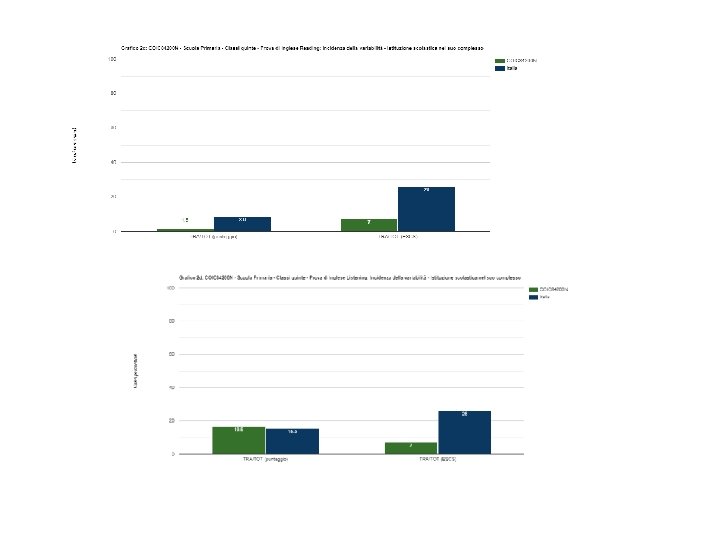 Andamento negli anni inglese Listening e Reading Differenza nei risultati Background familiare (punteggio percentuale) mediano degli studenti (3) rispetto a classi/scuole con (4) background familiare simile (2) Anno scolastico Classi/Istituto Media del punteggio percentuale al netto del cheating (1 a) Esiti degli studenti al netto del cheating nella stessa scala del rapporto nazionale (1 d) 2017 -18 COIC 84200 N 74, 2 209, 6 +5, 0 2018 -19 COIC 84200 N 72, 4 210, 6 +3, 0 Punteggio Lombardia (5) Punteggio Nord ovest (5) Punteggio Italia (5) alto significativamente superiore 75, 1 1, 1 medio-alto significativamente superiore 73, 1 0, 9 Esiti degli studenti Differenza nei risultati Background familiare al netto del cheating (punteggio percentuale) mediano degli studenti (3) nella stessa scala del rapporto rispetto a classi/scuole con (4) nazionale (1 d) background familiare simile (2) Anno scolastico Classi/Istituto Media del punteggio percentuale al netto del cheating (1 a) 2017 -18 COIC 84200 N 83, 7 214, 2 +4, 6 2018 -19 COIC 84200 N 77, 5 204, 0 -0, 9 Punteggio percentuale Cheating osservato (6) in percentuale (7) Punteggio Lombardia (5) Punteggio Nord ovest (5) Punteggio Italia (5) Punteggio percentuale Cheating osservato (6) in percentuale (7) alto significativamente superiore 87, 4 4, 0 medio-alto non significativamente differente significativamente superiore 78, 2 0, 8