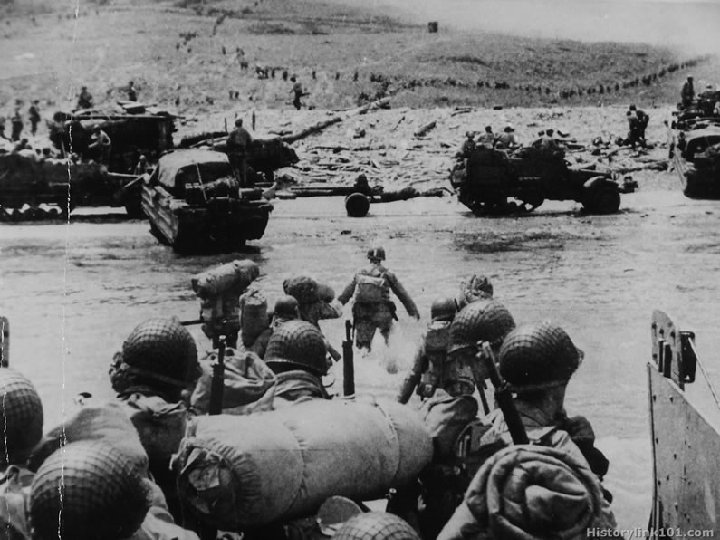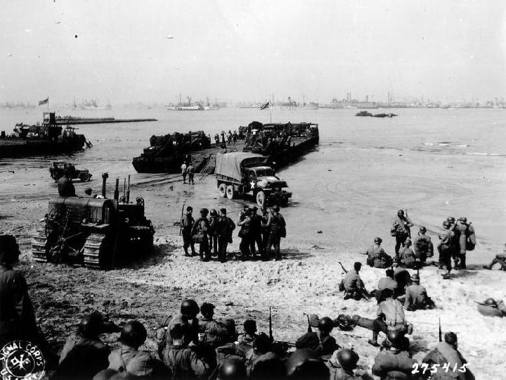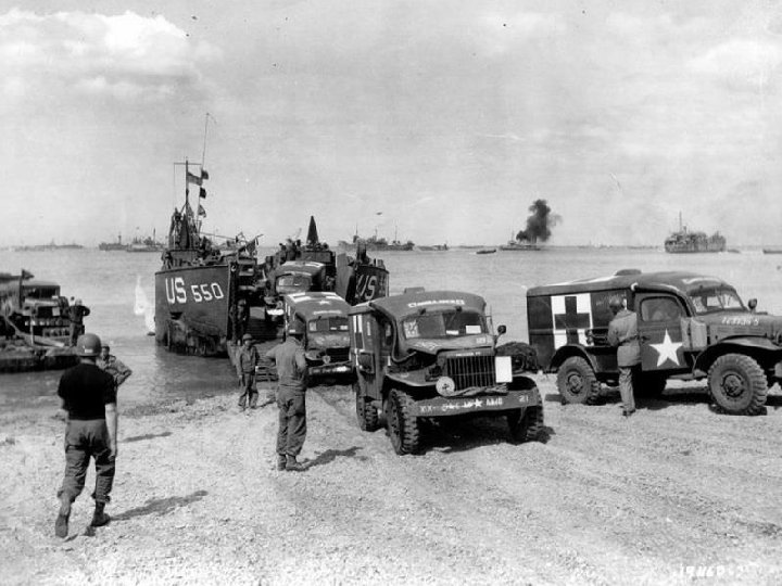 Invasion of Normandy 5 KNA Productions 2012 The Slides: 77 Download presentation Invasion of Normandy 5 KNA Productions 2012 The 177 men of the Kieffer commandos are the only French troops have participated in D-Day. The Third Reich built the Atlantic Wall. These fortifications extended from the Spanish. French border all the way to Norway. The landing was preceded by a gathering of troops, weapons and ships to England. Disguised vehicles Dodge Ambulances Air Convoy via Liverpool Fuel Supply Boarding in England Bombing at Pointe du Hoc Paratroopers The Drop A Glider Crossing the Channel Amphibians - DUKW Landing ! Sword Beach Juno Beach Gold Beach Omaha Beach Point du Hoc Utah Beach Mulberry A Two artificial harbors were created: . Mulberry A: St Laurent sur Mer. Mulberry B at Arromanches Mulberry A was destroyed by the storm of June 19 to 21 Arromanches : Mulberry B Phoenix Caissons: Breakwater concrete towed; then filled with water and sunk. Efficiency of dykes Floating Dock « Lobnitz » Floating Bridge « Whale » Reinforcements arrive. Anti-Air Balloons The greatest landing in history American Scooter U. S. soldiers looking at mini-unmanned German tanks "Goliath", loaded with explosives. The Wounded Field Hospital Repatriation of Injured It was Hell! 5 KNA Productions 2012 END