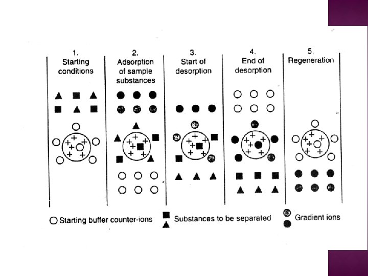 Equilibrio de la matriz Adsorción de la muestra Comienzo de la remoción Fin de la remoción Regeneración de la matriz • p. H, fuerza iónica