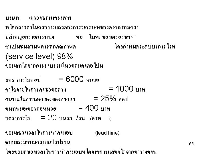 Inventory Tracking Systems • Periodic System Physical count of items made at periodic intervals • Perpetual Inventory System that keeps track of removals from inventory continuously, thus monitoring current levels of each item Perpetual = all-time, เปนไปอยางตอเนอง 11