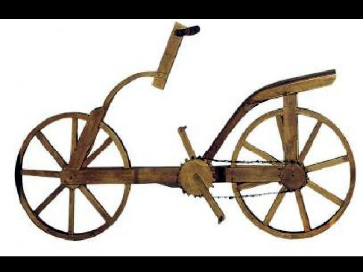 En 1490 se encontró en la obra “Codez Atlanticus” el primer dibujo de que conocemos hoy en día como bicicleta. En el esquema se encontraban las dos ruedas que distinguen a este vehículo, un sistema de dirección y una transmisión de cadena. Leonardo ya pensó en una transmisión de cadena como en las que se utilizan en la actualidad. Estos dibujos fueron dispersados por el tiempo y quedaron recopilados sin orden ni concierto en la biblioteca Ambrosiana de Milán.
